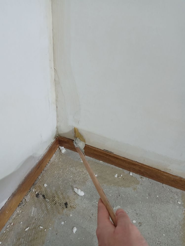 Een dag na het mengen kan je het op de muren aanbrengen met gewone (grote) verfrollers. Als je een sterk zuigende muur hebt, bespaar dan niet op deze stap en doe een tweede laag. De voorstrijk is goedkoop en kan een hoop problemen voorkomen. Bij twijfel na de tweede laag, doe nog een laag. Als je ondanks alle voorzorg om klontjes te voorkomen toch klontjes op de muur krijgt, haal deze dan gelijk weg, anders krijg je mogelijk bultjes onder je behang.