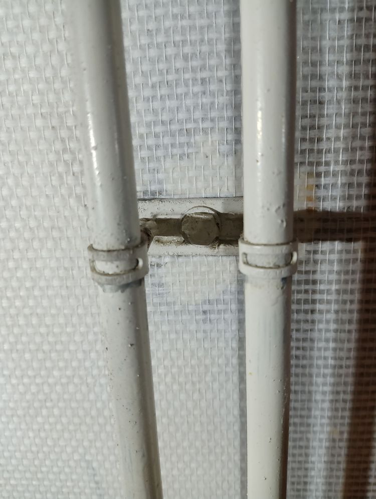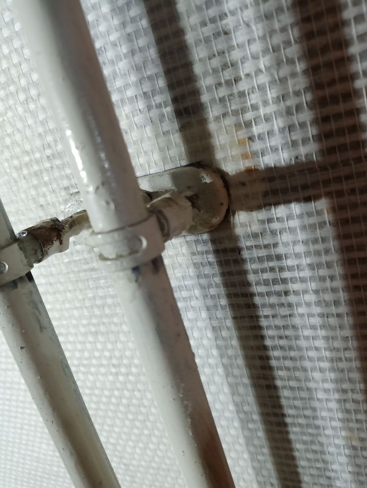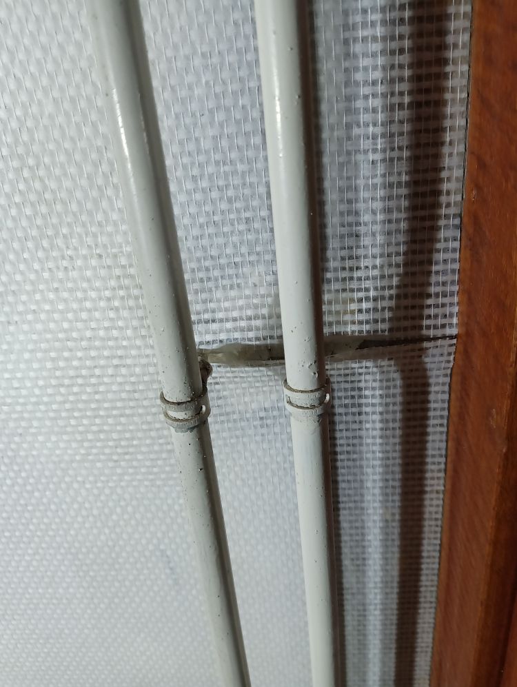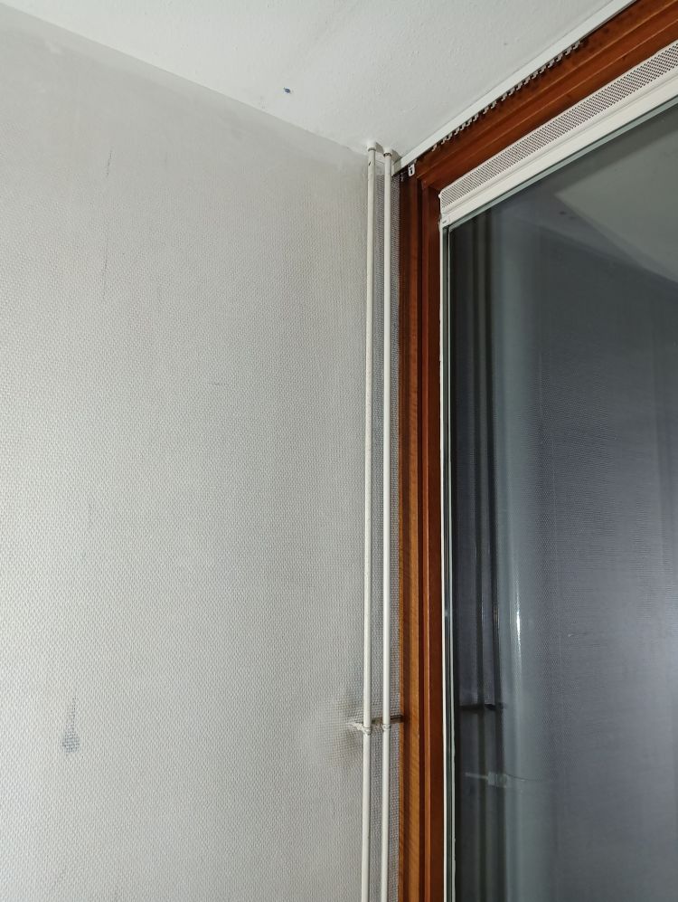 Op deze wijze ben ik doorgegaan tot het laatste stuk van de muur, waar radiatorbuizen over de muur liepen. Dit zijn de ‘lastige’ stukken, maar als je weet hoe je moet werken valt het reuze mee. Begin te plakken van de baan aan de vorige baan zoals hierboven uitgelegd. Smeer royaal plaksel met de radiatorkwast achter alle obstakels langs en alle hoeken. Smeer dan de rest in met de roller zoals je eerder ook gedaan hebt. Plak de baan vast aan de muur tot het obstakel begint. In dit geval is dat de beugel die de radiatorbuizen vasthoudt tegen de muur. Druk het behang zover mogelijk tegen het obstakel aan en markeer dit punt. Vanaf dit punt ga je namelijk horizontaal de baan insnijden tot aan het einde van de baan. Hierdoor kan je de bovenhelft over het obstakel heen drukken en de onderste helft eronder. Heb je meerdere obstakels of hele brede, dan zul je meerdere insneden moeten maken. Zodra je insneden hebt gemaakt kan je het behang achter het obstakel langs duwen, in mijn geval dus de radiatorbuizen. Wees niet te bang met het behang ergens achterlangs duwen en/of trekken. Glasweefsel is erg sterk en zal niet snel scheuren dus er mag gepaste kracht bij gebruikt worden. Ik gebruik hier de behangspatel voor tot er een puntje van het behang achter de buizen vandaan komt en ik deze kan vastpakken en verder kan trekken. Maar duw niet met de punt van de spatel, want dan kan je vezels beschadigen of er een opening in duwen door de vezels te verplaatsen.